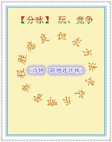 读法:用452式顶真回环文法可读成非绝句的七言一首。