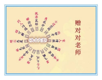 九十六爻,有两种图,一种是只有卦象,不写出卦名,一种是补出卦名,使不认识卦的人读起来方便。后一图中外圈的字都是卦名,安排在每句的三四字与七字上,如“既济”、“同人”等,共十六个卦名;内圈为相应的十六个卦的卦象;夹在内外圈的中间的是作者颇为用心安排的字。从“既济”卦开始,可读成一首七言八句的抒情诗。卦形诗形式上像珠盘诗,只是增加八卦和卦名。卦形诗确实是一种诗体,诗严格受图形控制,必须用卦名,但因为固定的字数过多,共24字,作者可自由活动的只有32字。另外这些被限制的字的内容和平仄,又使创作的范围极小,位置灵活的空隙很小,因此诗很容易千篇一律,流于文字游戏。