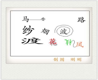 马引香微路远,纱笼月淡烟斜。旋波宽渡映红花,倒绿枝丹凤挂。