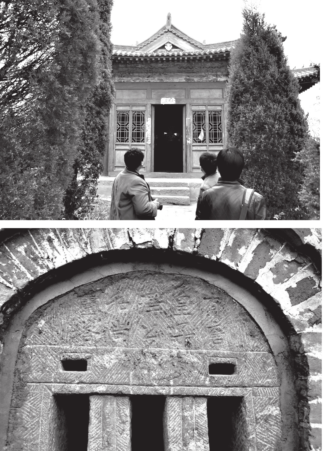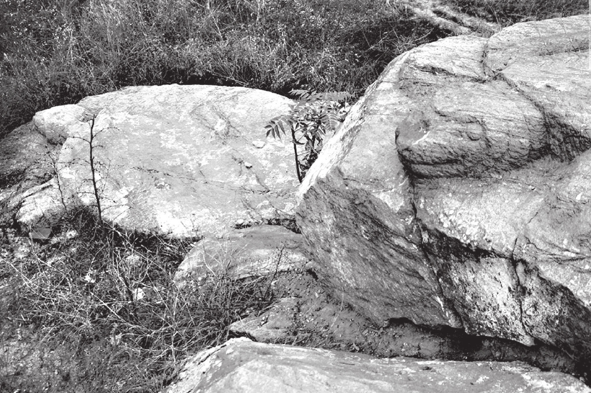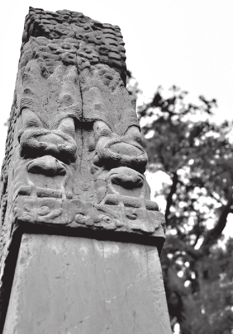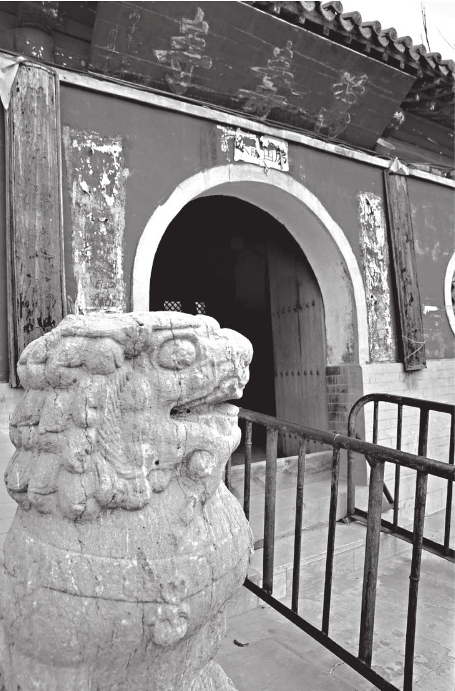 乌龟群落引起了我们的兴趣。按照庙门的位置,它是左(西面)五、右四,构成了九龟,所有的龟头一律面朝着南方。正如《礼运》所载:“死者北向,生者南向”,这真是视死如归了。