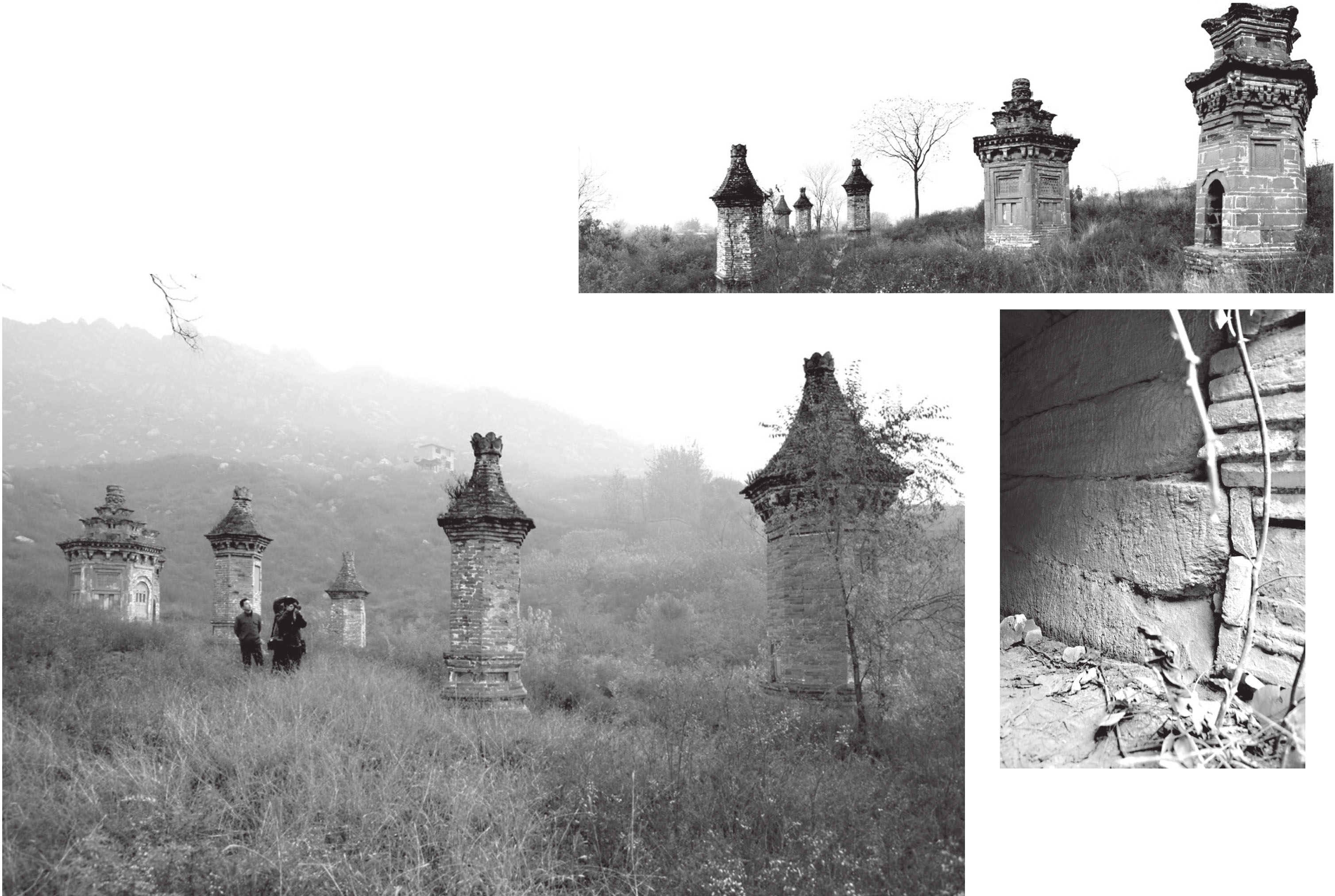 据铭文记载,这里的寿塔主人均系万寿禅寺高僧。塔群建于后唐至明时期,原有砖塔数十座,现存13座,占地3 500平方米,墓塔分别为单层单檐、双层双檐仿木结构,塔有柱、额、门、窗,刻有铭文。有后唐塔1座,相传是唐天寿太子墓塔,为三彩斗塔,其他属元、明建筑。
