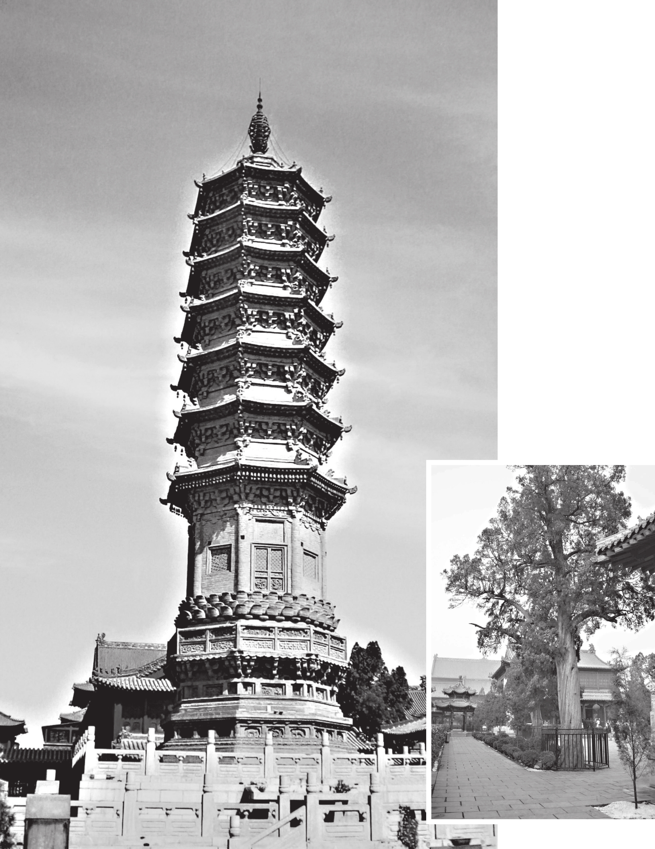 赵县柏林寺塔位于河北省赵县城内,柏林寺塔又称真际禅师塔,为柏林寺内主要建筑之一。该塔是元天历三年(公元1330年),为纪念唐代佛教界著名禅师真际禅师而建。塔为砖制,八角七级密檐式,高39.5 米。塔下部为须弥座,上部为仿木斗拱支承平座。平座周围砌蜀柱、勾栏,再以四层仰莲承托第一层塔身。一层塔身较高,东西南北四面均饰假门,南门上方镶石匾一块,上书“特赐大元赵州古佛真际光祖国师之塔”,左侧并刻有“天历三年孟春上旬吉建”的纪年铭文。一至七层檐下均施仿木斗拱,塔刹为铁铸。该塔为全国重点文物保护单位。