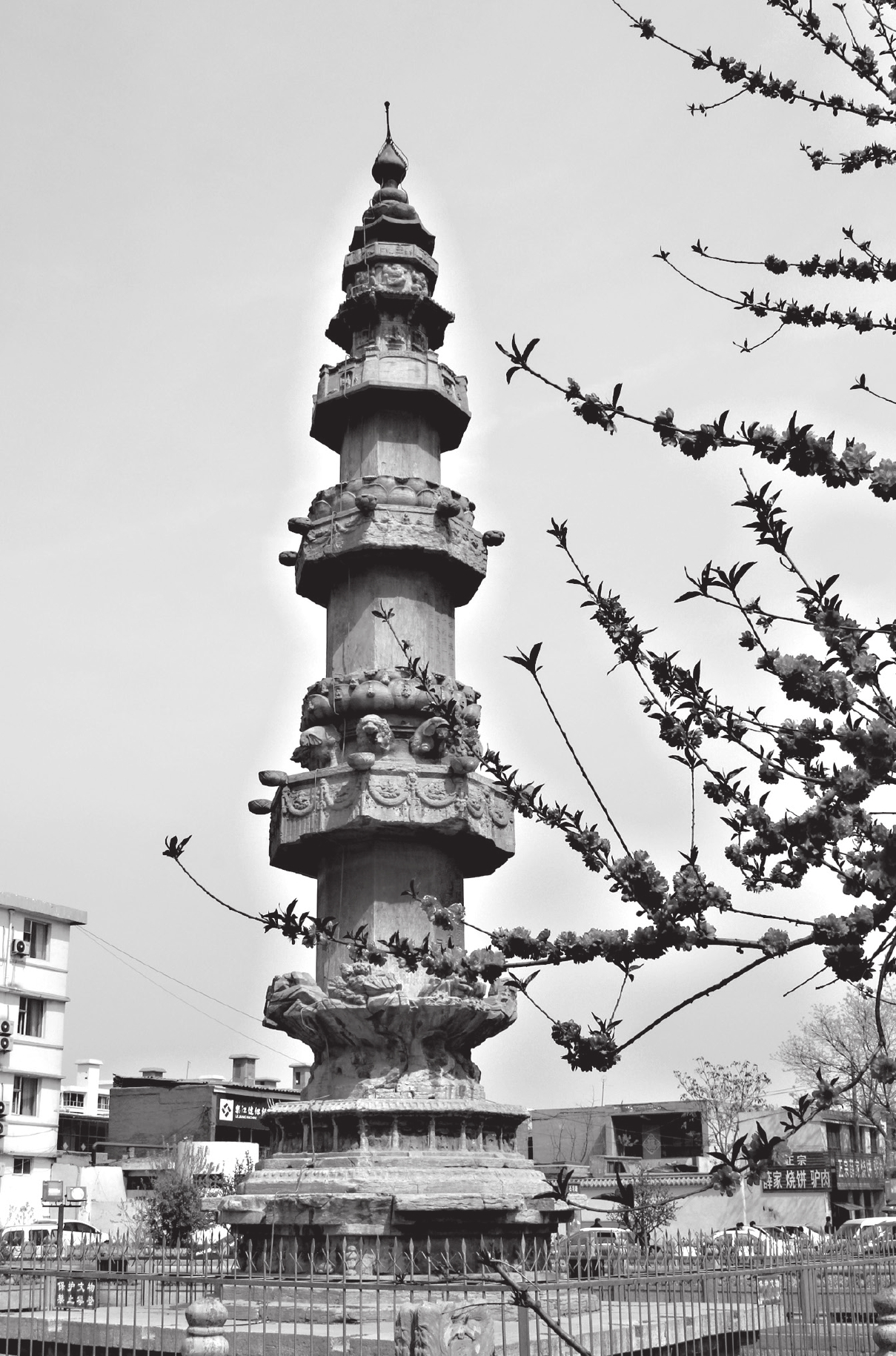 陀罗尼经幢位于河北省赵县城内南大街与石塔路相交的十字路口处,这里原是唐代开元寺的旧址,经幢为开元寺的建筑物,后寺废而经幢仍存。因幢体刻有陀罗尼经文,故称“陀罗尼经幢”。这座经幢全部用花岗岩石雕琢叠砌而成,外观造型酷似塔,当地俗称“石塔”。