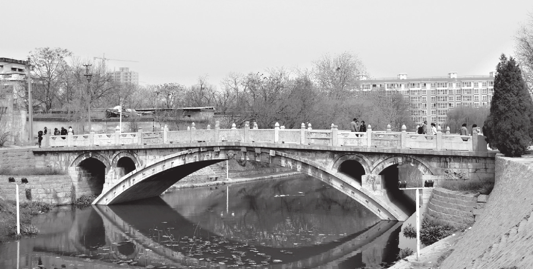 桥面弧度很小,近于水平,便于车辆通行。在桥的拱肩大拱上同样伏设四个小拱,小拱与大拱幅度之比大于安济桥,这是匠师因地制宜的创造性运用。