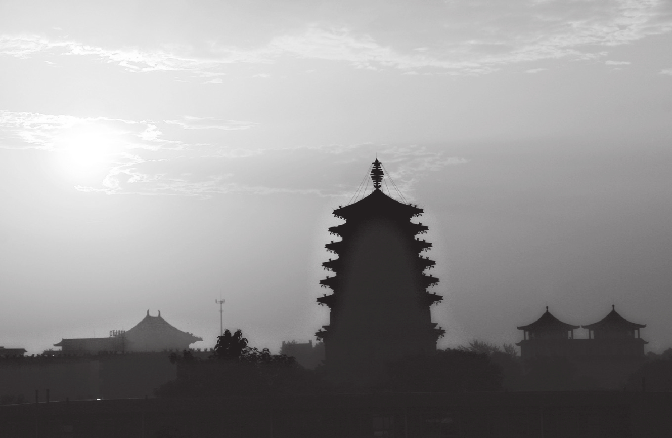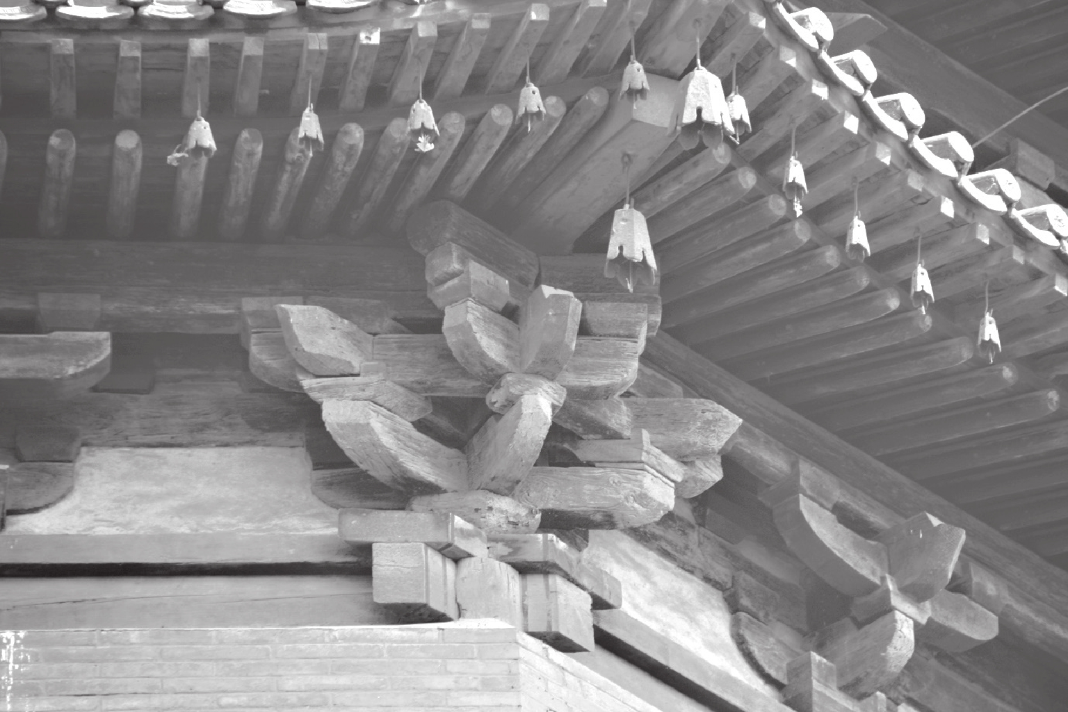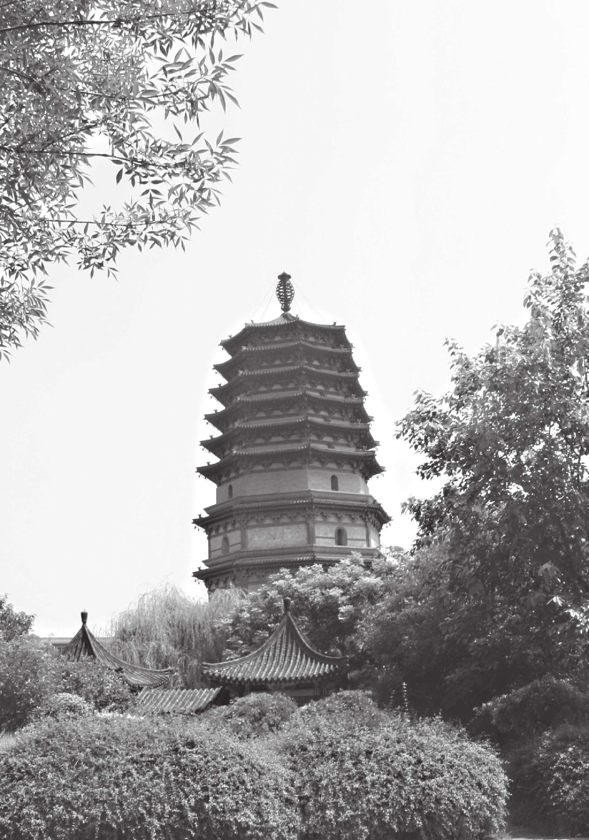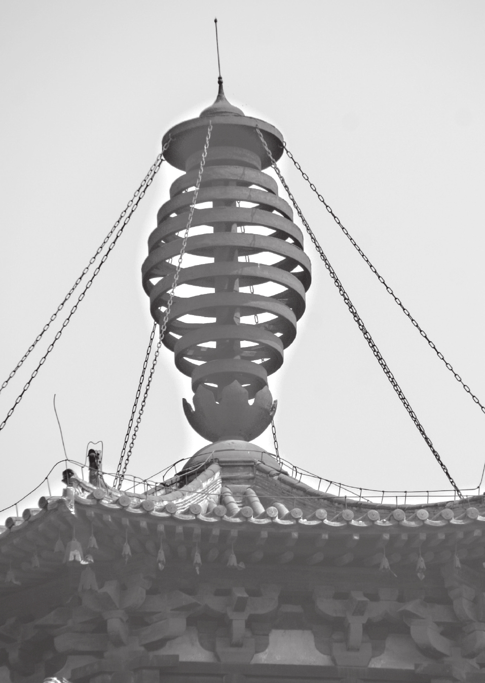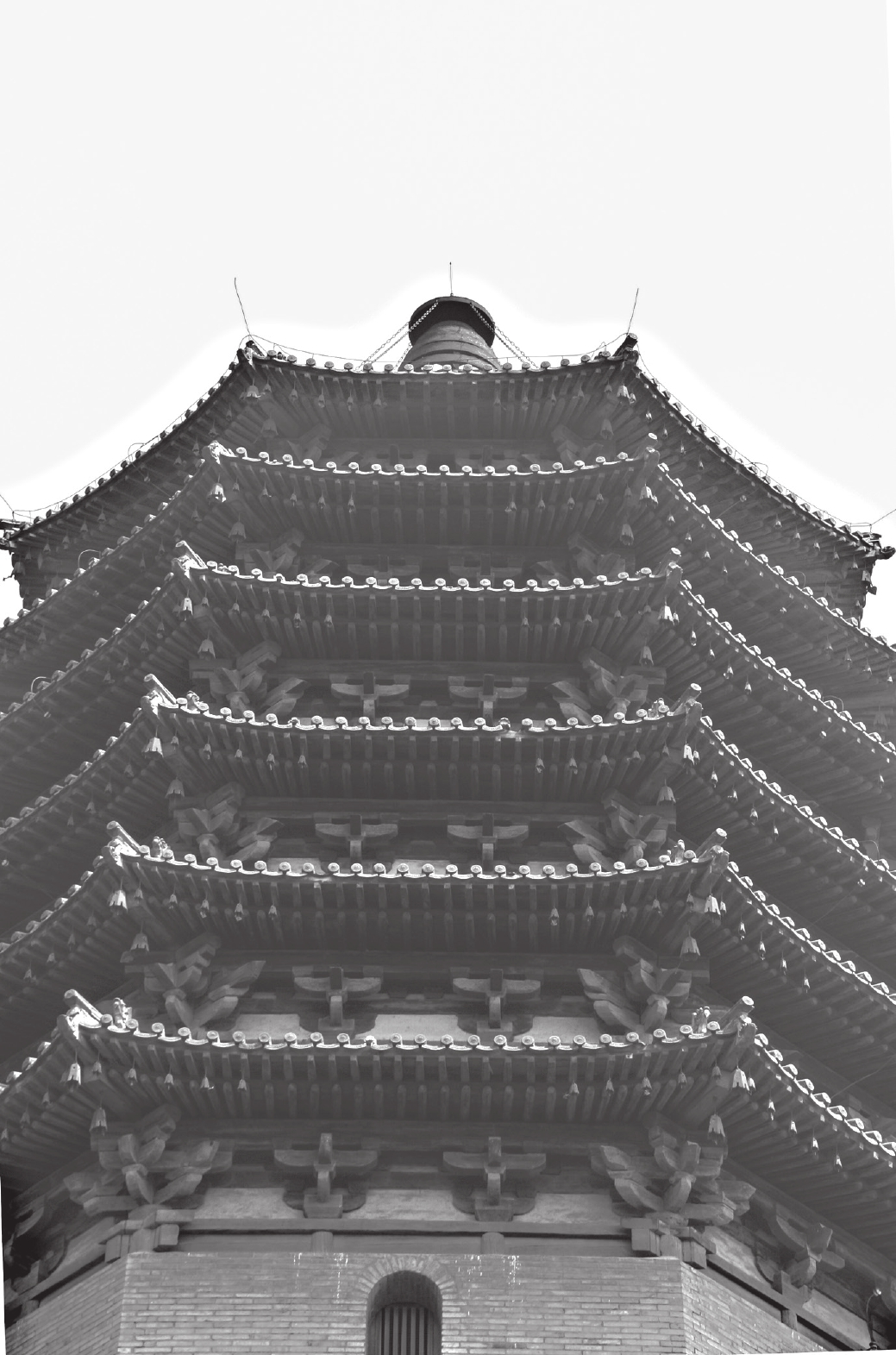 070斗拱、飞檐皆为木制。从第五层开始,各层高度逐层递减,外部轮廓逐层收缩,给人以轻盈挺秀之感。