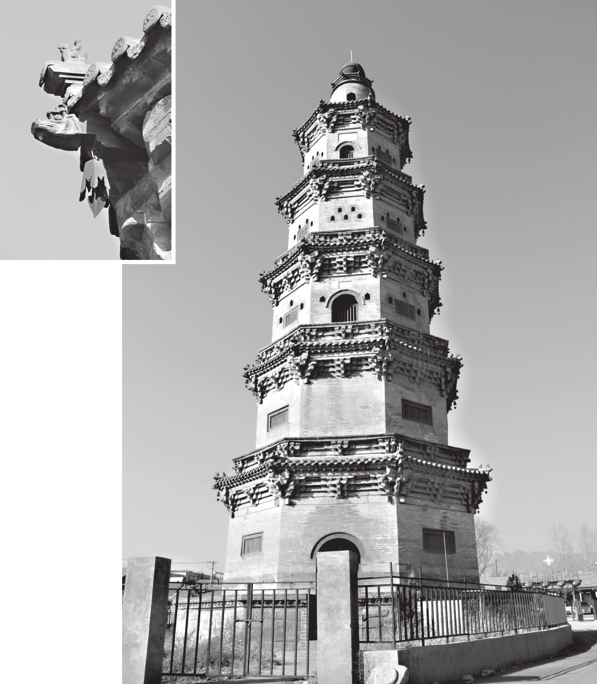 赤城重光塔位于河北省张家口市赤城县龙关镇唐代华严寺遗址,明正统十四年(公元1449年)重建并改名普济寺,明朝名将杨洪收复塞北山河后,重建该塔并改名重光,取光复之意。塔为八角五层楼阁式砖塔,通高33.67米,占地126平方米,基座为六层条石砌成,各层设拱门两个,饰盲窗。四、五层各置26个瞭望孔,檐下雕仿木斗拱。塔刹为铁质覆钵体。塔内砌砖梯,可攀登至顶层。此塔是塞外唯一的军事性古塔。