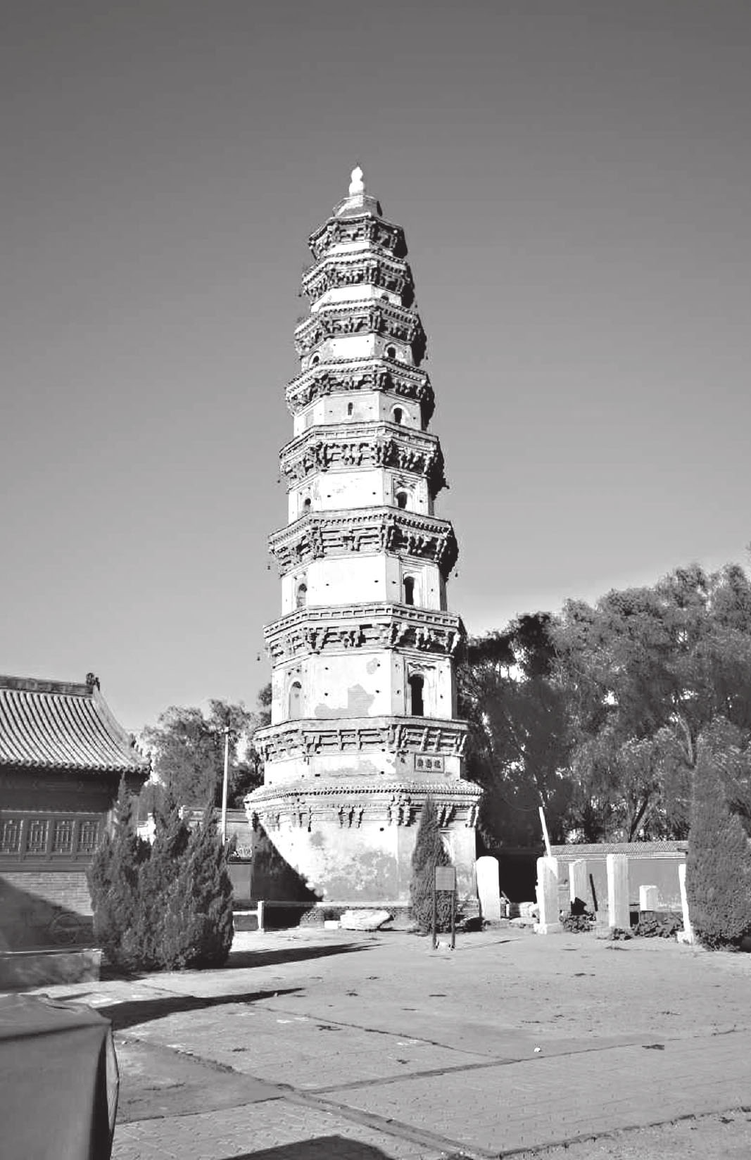 宝云寺塔始建于唐代,宋代重修,八角九级结构,高35米。塔体为八面棱锥体砖木结构,雄浑古朴,气势磅礴。若人要登塔顶,需有一定的勇气,因为每登一层都要绕塔沿半圈,找到另一侧的入口。宝云寺塔为宝云寺内重要建筑,原寺已毁,现寺为1993年重建。首层南面为塔门,入门为塔心室,北面有券门进入,沿阶梯而上可达六层,至六层为穿心式。六层以上为空筒式,内设固定阶梯可达顶层。在三至五层东西南北四面辟门,在以上各层南、北辟门,东、西两面设佛龛或盲窗。各檐下均设仿木斗拱,为宋代风格。