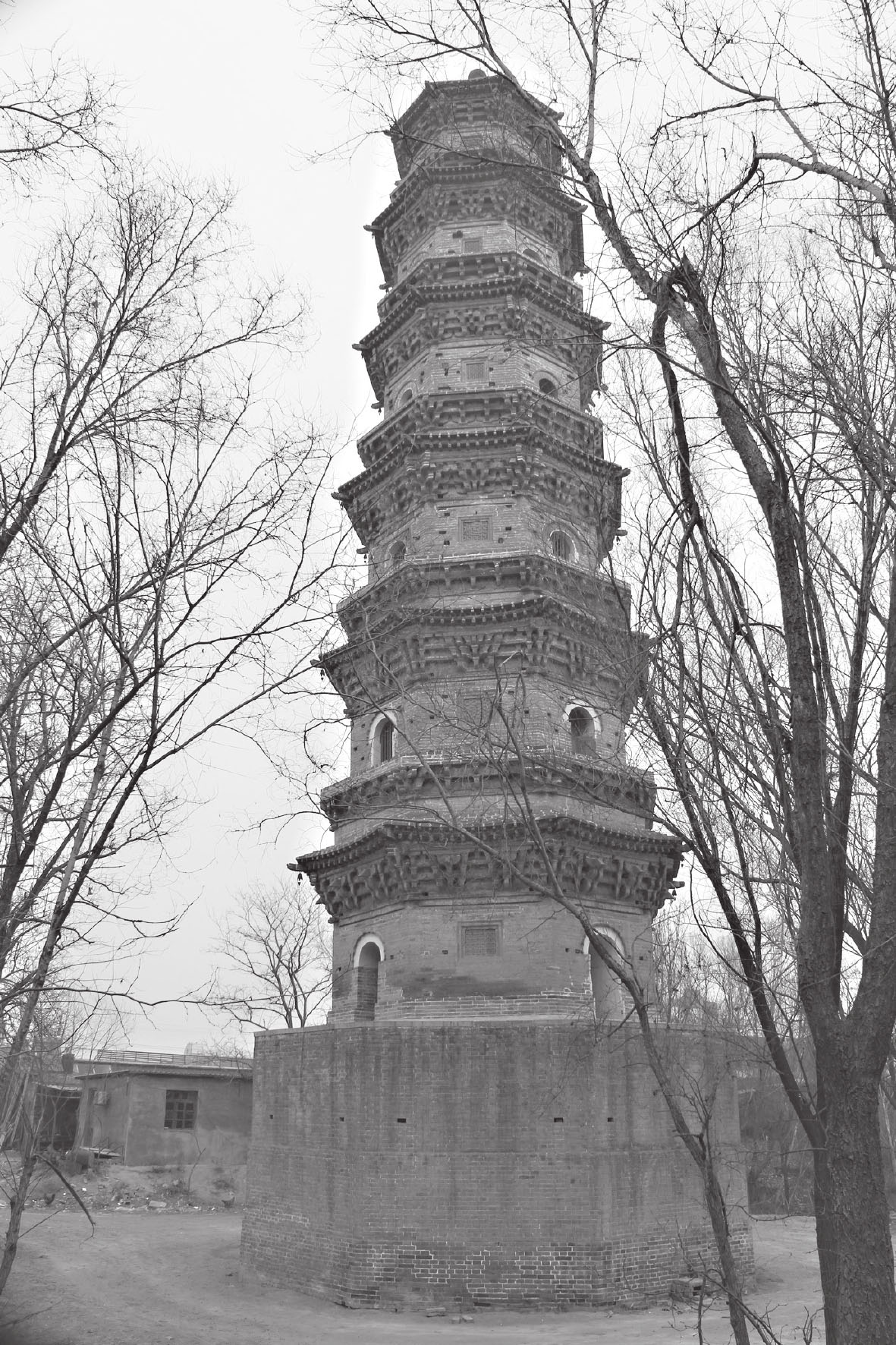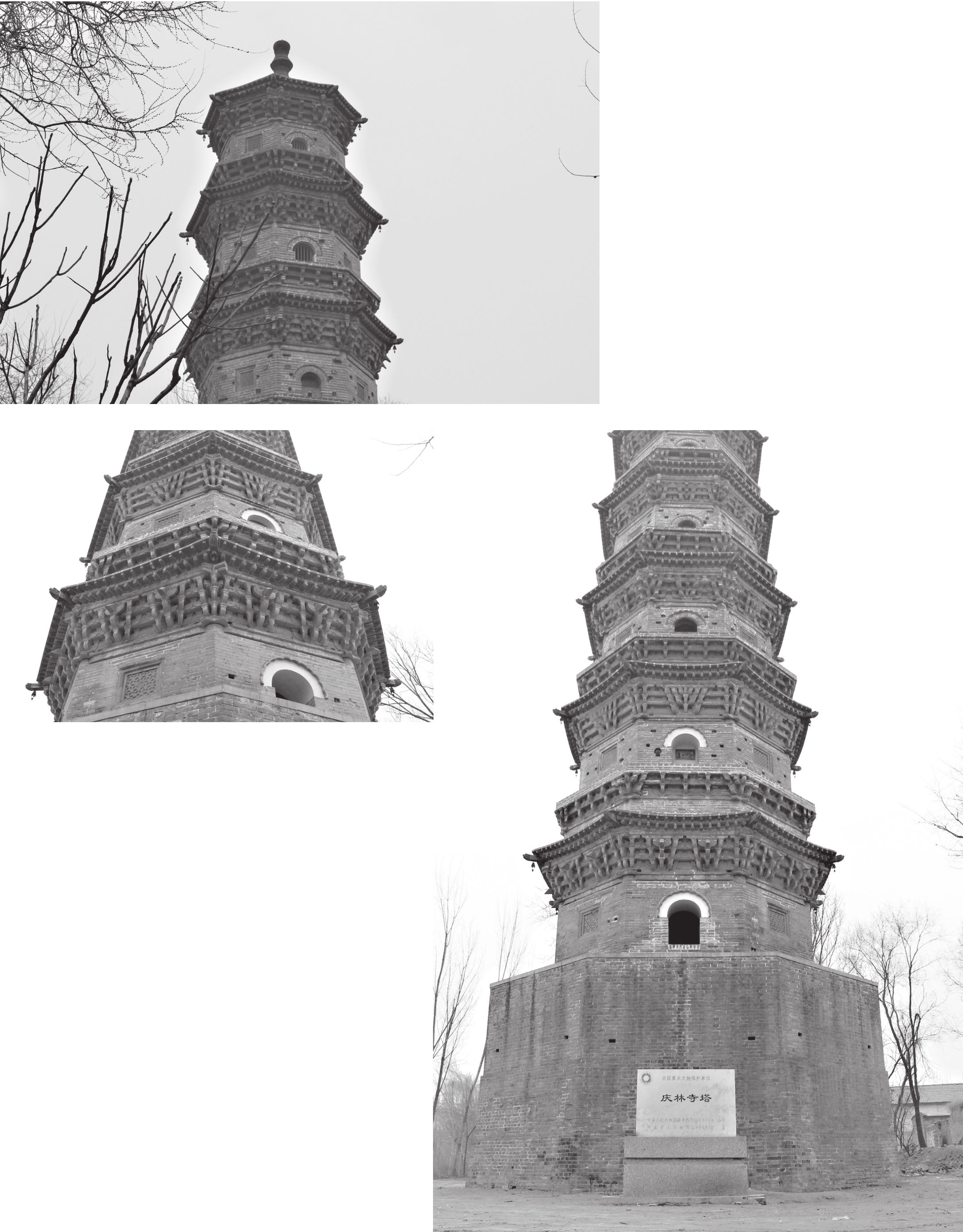 庆林寺塔用青砖砌成,坐南朝北,平面为八角形,为楼阁式砖塔,建筑面积为165.2平方米。塔有七层,高35.67米,塔顶为铜葫芦形塔刹。其造型挺拔秀美,砌筑精巧,每层之间砌有双层塔檐。第一层为三米多高的塔基,二层以上每层各在东、西、南、北四个方向有一个券门。门上有窗,窗上装有菱纹、云纹、天莲花纹的窗棂,花饰精美,各不相同。塔檐为45度斜拱。塔内为穿心式和壁内折上式相结合,可拾级而上,到达塔顶,四壁还有大小不同的佛龛、灯龛等。该塔精巧玲珑,造型美观,独具一格,为宋代砖塔的精品,至今保存完好,该塔为全国重点文物保护单位。