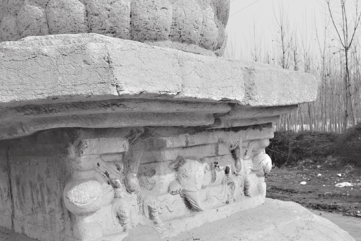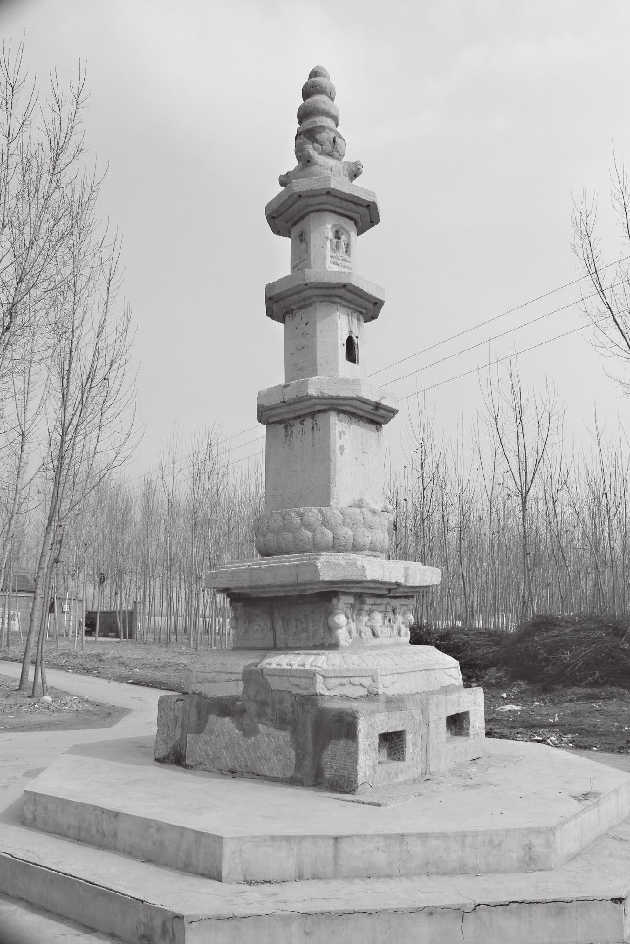 西堤北石塔位于河北省衡水市冀州区西堤北村东50米处,又名“震雹塔”,为元代建筑,全部用青石雕刻砌造,共三级,高8米。塔座两层,下部方形底座,上部塔座由四面抹角的方形莲座和浮雕束腰多层叠涩组成,束腰上雕有大象、狮子、力士等。首层塔身下部为圆形双层莲座,上托方形塔身和叠涩塔檐,塔身上小字已辨认不清,只有“震雹塔”三字可辨。第二、三层塔身为抹角的方形,各面分别雕有佛龛、佛像、佛宝等,塔刹为葫芦形。该塔第一层正面刻有铭文,上有“南无释迦牟尼佛”七个大字。第二层正面神龛两侧刻有“大清乾隆二十六年三月十二日全村发心重立”字样,该塔于1976年进行了重新维修,为河北省文物保护单位。