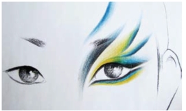 (5)根据设计画稿的构思要求完成实际操作,呈现出妆面设计效果图。