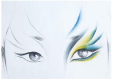 (2)能够运用直线、斜线设计妆形,并学会夸张眼形与眉形的方法。