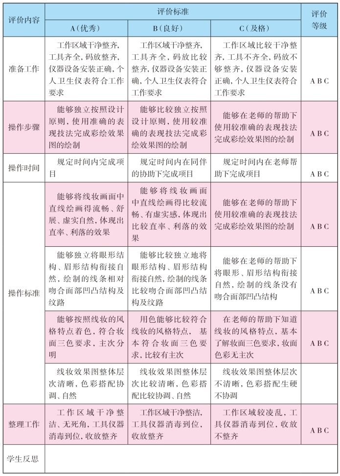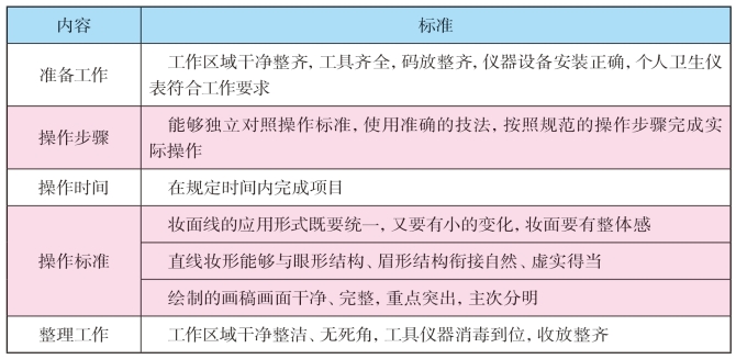 (3)能够设计构思完成直线妆形,并绘制出创意妆形效果图。
