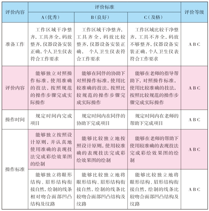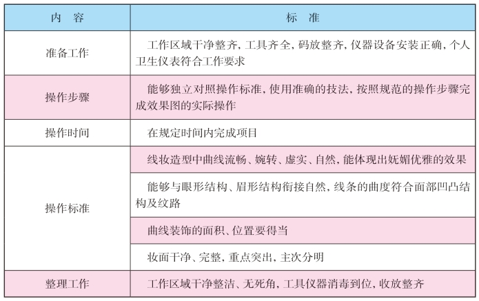 (1)在设计中完成优美舒展的线条并能与眼形结构、眉形结构衔接自然、布局排列疏密得当。