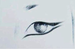 ②眼帘尾部眼线与曲线图形绘画流畅。