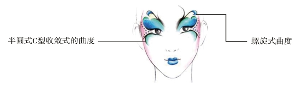 曲线在妆形设计中能够表达优美、婉转的妆容妆貌,体现出女性的柔美特性。曲线的曲度、虚实不同也会使妆面产生异样的效果。因此,学习理解曲线的基本特性并掌握各种曲线的表现方法、技巧是完成曲线妆形设计效果图的重点。