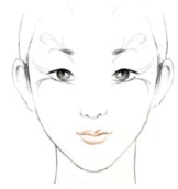 提示:弧度较大的图形,画在面部的线条可以舒展些。