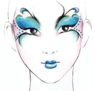 (3)学会运用曲线的延伸、迂回充实妆面,夸张眼形与眉形。