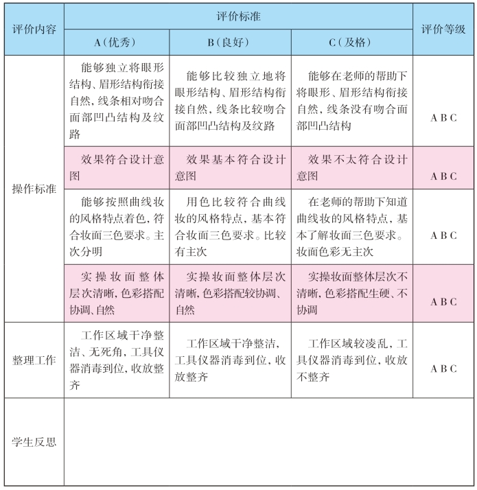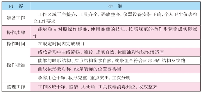 表1-4-2 曲线妆形实际操作检测评价表