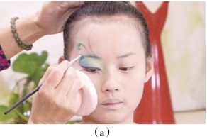 (2)能够完成眼影的扑色、脸部轮廓的修饰,腮红的位置正确,颜色均匀自然。