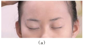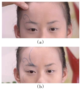 (3)修眉:将眉头修理整齐,眉尾部修理得短些少些。