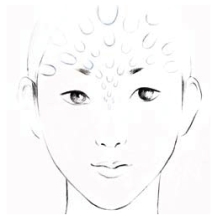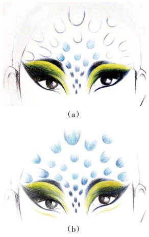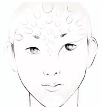 ①确定点的装饰位置:由鼻梁部位到额头、两鬓位置。