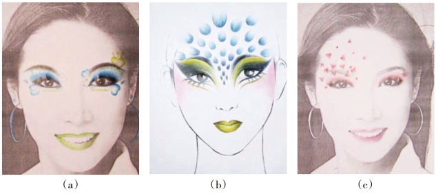 (2)妆面中点的组合要疏密得当、松紧适宜、排列舒展、位置合适。
