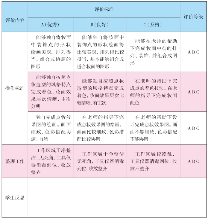 (2)能够在妆面中学会点的组合、排列及用色的方法。