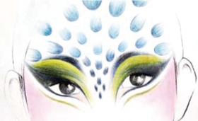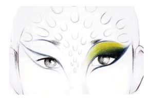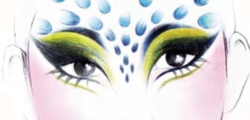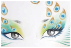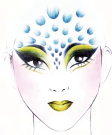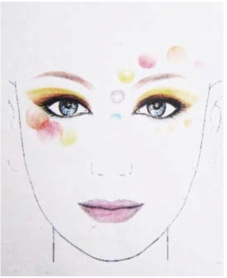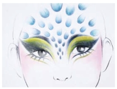 (3)点缀色在画面中属于少而精的色彩,通常配以纯度较高、明度较高、醒目的色彩。是彩绘化妆中的精彩部位和协调的亮点。(如图2-1-9所示)