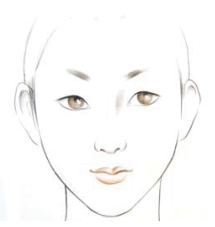 提示:妆面中的唇色一般起两个作用,其一是点缀作用,运用最鲜明的、突出的色彩,使妆面更加亮丽;其二是淡化作用,能融入妆面整体色调之中,把视线转移到妆面的精彩部位。