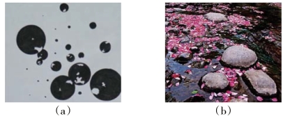 散落自由式组合:散落后自然形成有疏有密的点的排列效果。点的密集处有重叠,可以有大小不同的点,能体现出疏密自然的画面效果。