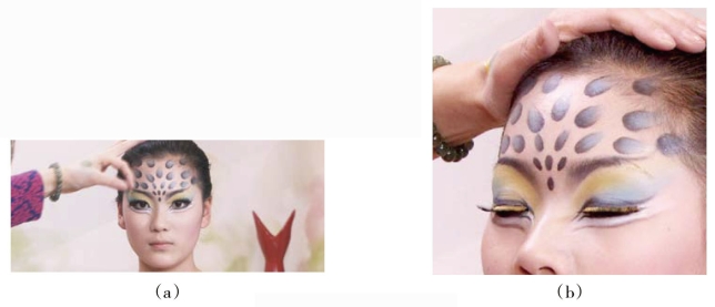 (3)点在妆面装饰的位置及组合容易松散、死板。