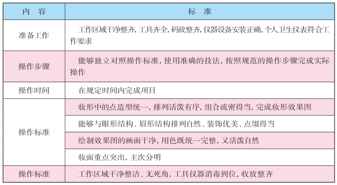 (5)能够设计构思完成点妆妆形,并绘制出创意妆形画稿。