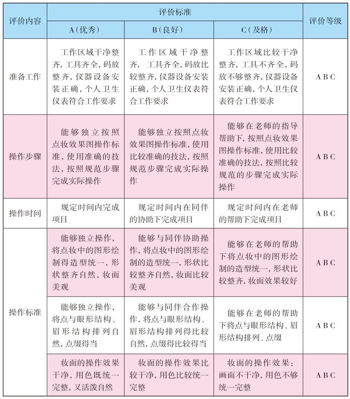 (1)能够根据点的特性叙述点妆妆形设计的妆面效果。