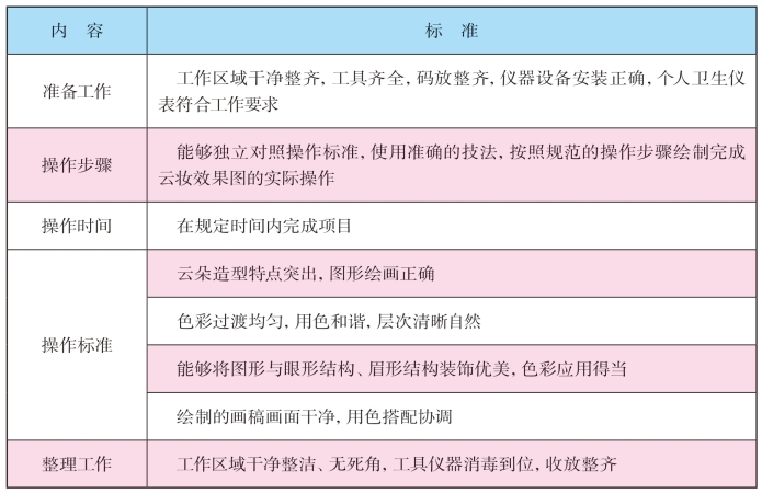 (4)能够设计构思完成云朵妆形,并绘制成妆形效果图。