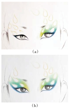 (3)孔雀妆的图形着色层次清晰,浓淡适宜。