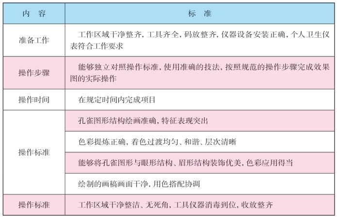 (1)能够叙述孔雀妆形和色彩的基本特征。