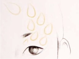 (3)在妆面画图形时,事先考虑好妆面的用色,有的图形着色要先留空,画完后再覆盖。