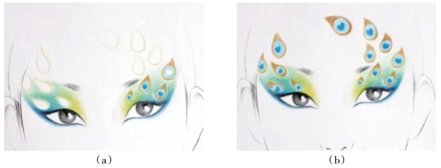 (2)在妆面设计孔雀图形。