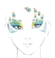 (4)根据构思要求完成孔雀妆妆形的效果图。