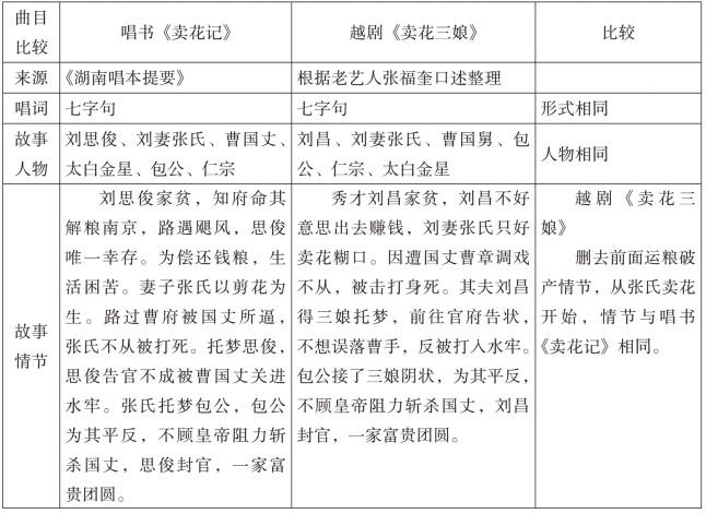 表11-1 唱书《卖花记》和越剧剧目《卖花三娘》