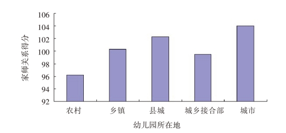 图5.32 不同所在地的幼儿园教师家师关系平均分示意图