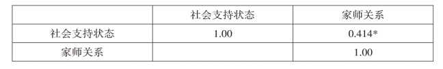 对社会支持状态得分及幼儿园教师的家师关系得分进行皮尔逊相关分析,结果发现,社会支持状态得分与家师关系得分存在显著正相关(r=0.374,P<0.05)。该结果表明,幼儿园教师社会支持状态越好,家师关系越好。