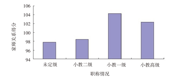 图5.27 不同职称的幼儿园教师的家师关系平均分示意图