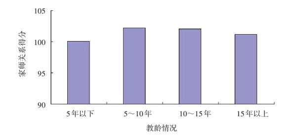 图5.29 不同教龄的幼儿园教师的家师关系平均分示意图