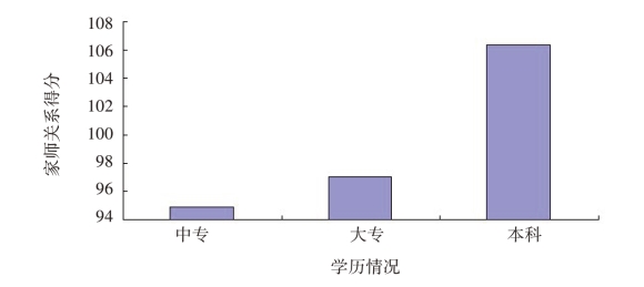 图5.26 不同学历的幼儿园教师的家师关系平均分示意图