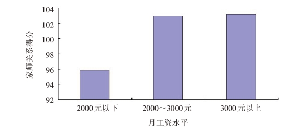 图5.33 不同月工资的幼儿园教师的家师关系平均分示意图
