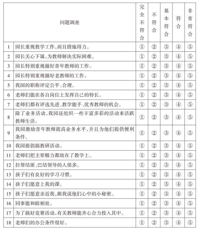下面是一份幼儿园工作氛围问卷,请根据您的实际情况认真填写,在每个问题后面相应的分数上打“√”。