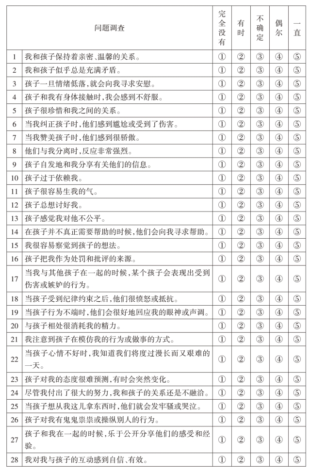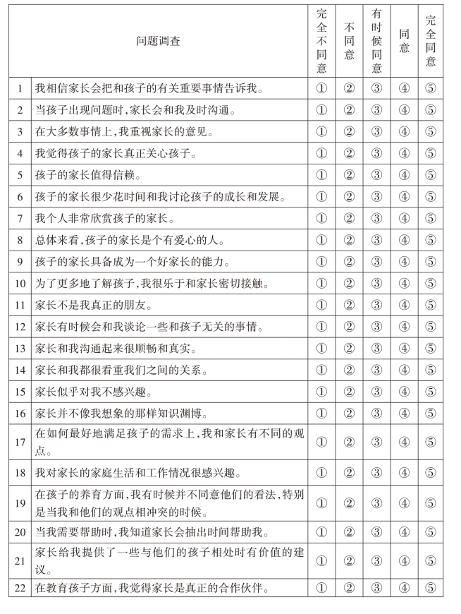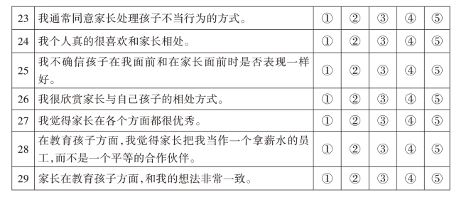 下面是一份幼儿园学生的家长与教师之间关系的问卷,请根据您的实际情况认真填写,在每个问题后面相应的分数上打“√”。