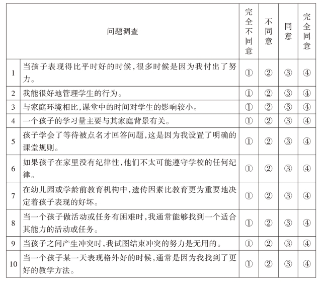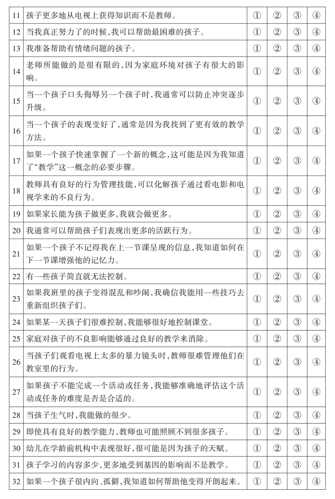 下面是一份幼儿园教师保教效能感问卷,请根据您的实际情况认真填写,在每个问题后面相应的分数上打“√”。