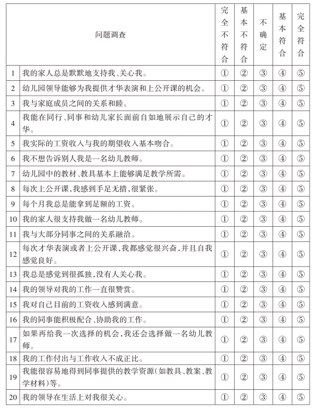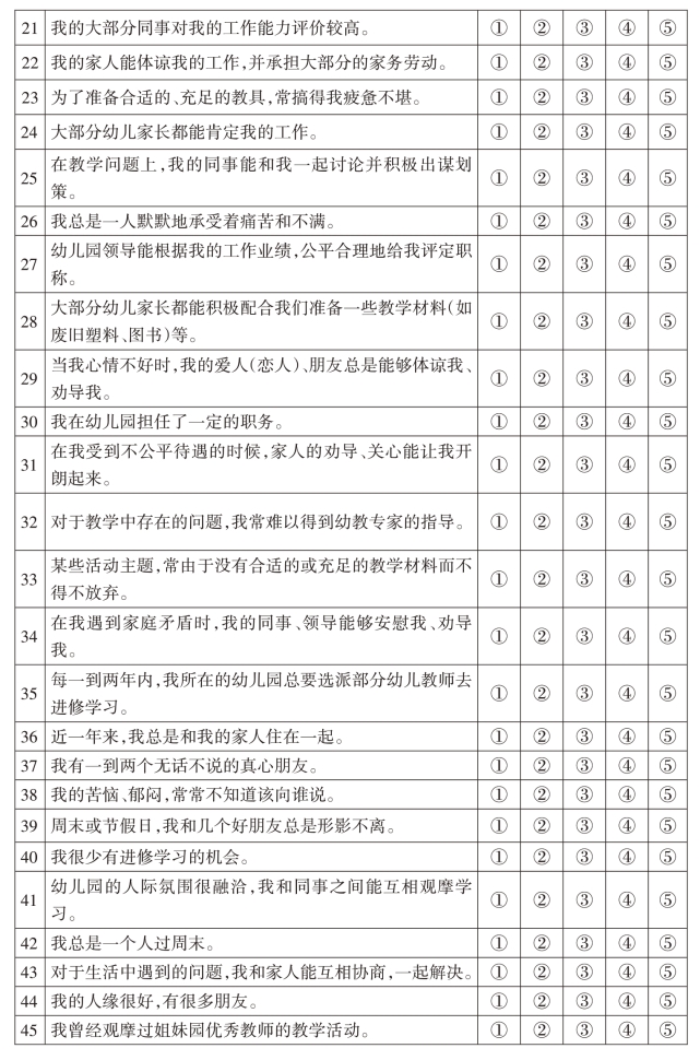 下面是一份幼儿园教师的社会支持问卷,请根据您的实际情况认真填写,在每个问题后面相应的分数上打“√”。
